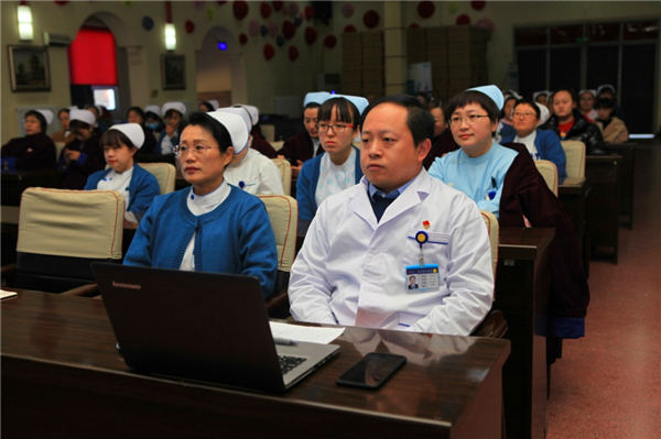 为激发实习学生爱岗敬业、积极奉献的工作热情,鼓励和表彰在毕业实习中表现出色、成绩突出的学生,2019年12月13日下午1:30护理部在学术报告厅举办“2019年度实习带教工作总结暨表彰大会”。会议由刘惠主持。护理部主任孙爱梅,院长助理邵学财,全院护士长、带教老师及护理实习生100余人参加了会议。