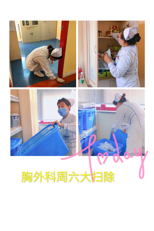 作为医院的主要功能区域,各临床科室对各自病区进行了全面的整理清洁工作,除了对墙面、门窗、空调等进行全面擦洗;还对各种仪器设备进行消毒清洁,保证每一位患者的安全使用。对病房、值班室的柜子、床铺统一进行清扫打理;对医生办公桌面、文件资料进行整理清洁。严格生活垃圾、医疗垃圾的规范管理,保证病区无积存杂物、无废弃物、无卫生死角,确保住院患者的生命健康安全。