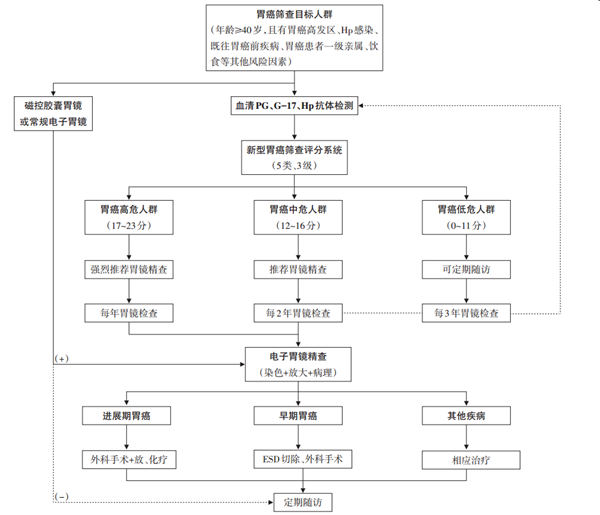 参考国内外既往胃癌筛查方法,结合我国最新的临床证据,建议推荐采用以下早期胃癌筛查流程。