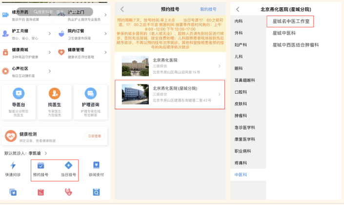 1、通过“北京燕化医院”APP预约挂号。