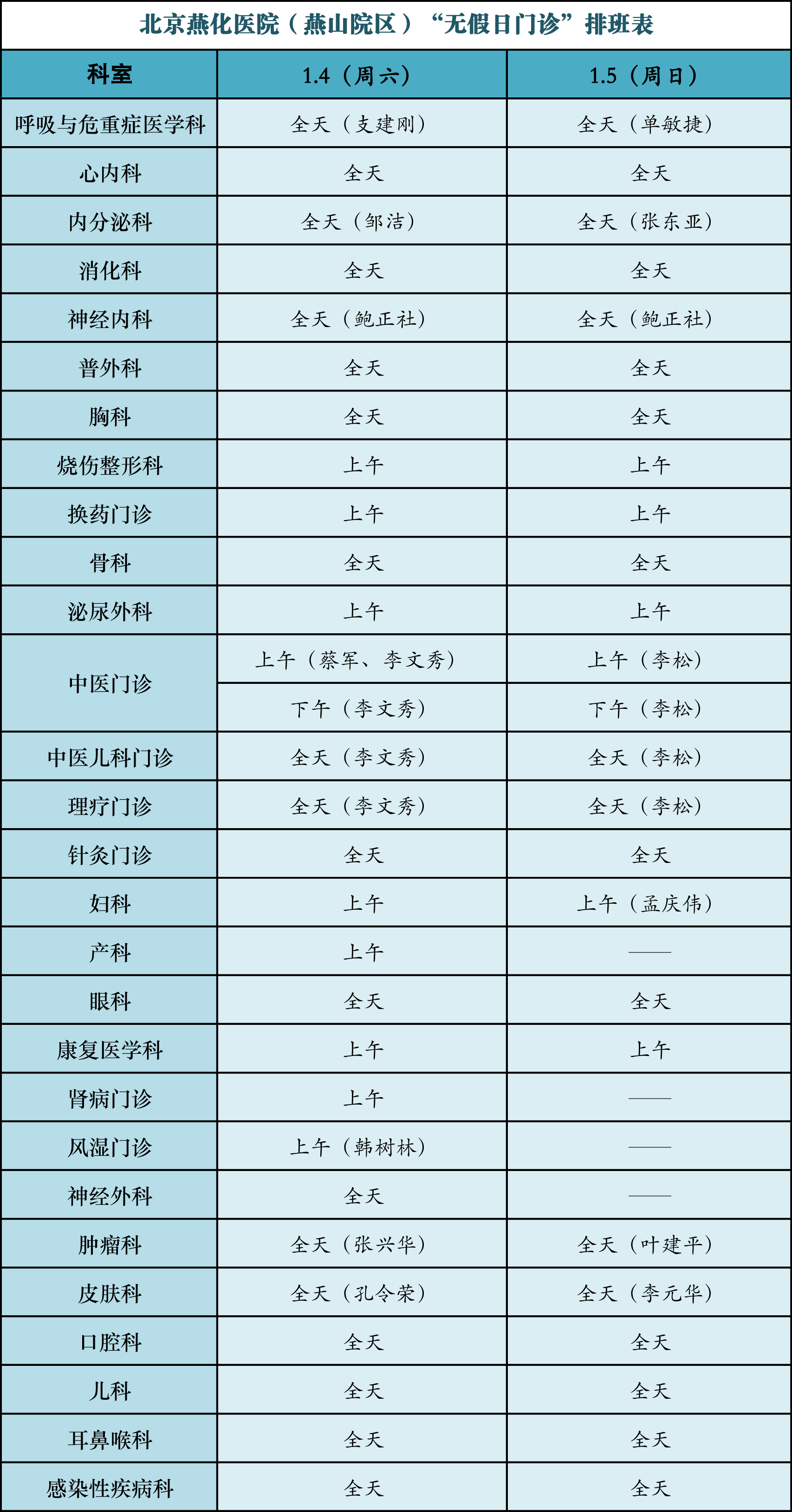现将本周末(2025年1月4日-5日)“无假日门诊”安排表公布如下: