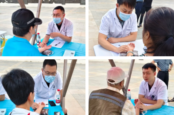 问诊把脉区——医生们认真倾听患者们的倾诉!通过望、闻、问、切的方式为患者们答疑解惑、把脉问诊、科普中医药健康知识。在我们即将收尾的时候,李松主任遇到了一位非常热情的老患者,她高兴的拉着李松主任说“我正想去医院找您就诊,没想到能在这儿遇到您,真是太高兴了,在家门口就能就诊了,太方便了!”听到这位阿姨的话,我忽然觉得我们的中医夜市活动真的太有意义了!