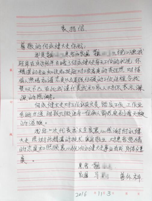 下一篇: 患者家属感谢精神科医生吴喆对患者认真负责