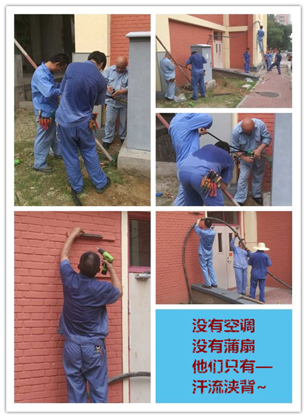 13日,入伏第二天,因天气闷热、高温持续,用电量陡增,造成部分科室用电电压低,电脑、空调无法正常使用。为了解决这个问题,物业部对外协调借用电缆,紧急铺设电缆120余米,从下午三点,一直忙到晚上八点半,铺设安装调试完成,电脑空调正常使用。
