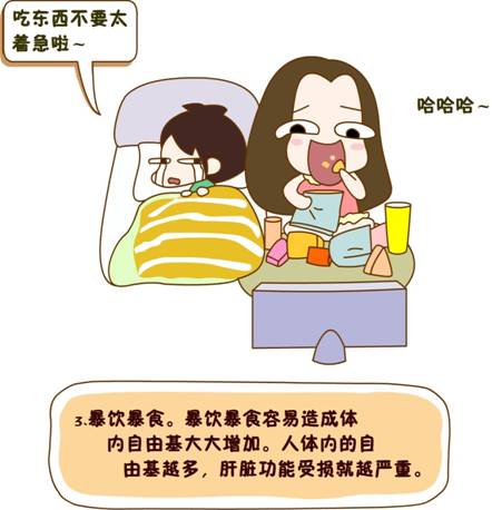 每年的3月18日是全国爱肝日。肝是人体五脏之一,具有代谢、排毒、造血和强大的免疫功能,对身体健康影响极大。睡眠不足经常熬夜、暴饮暴食、偏爱油炸食品、过量饮酒、胡乱吃药……这些行为最伤肝!今天,我们一起通过一组漫画来了解一下肝脏最怕什么,从而学会保护好你的肝脏,养出一副好身体!