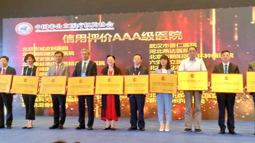2018年4月25-26日,在海南博鳌由中国非公立医疗机构、健康界传媒等主办的“2018中国社会办医大会”上,北京燕化医院荣获信用评价“AAA“和能力评价五星级荣誉。杨金龙副院长代表医院上台参加了信用及能力评价(简称双评)的授牌仪式。
