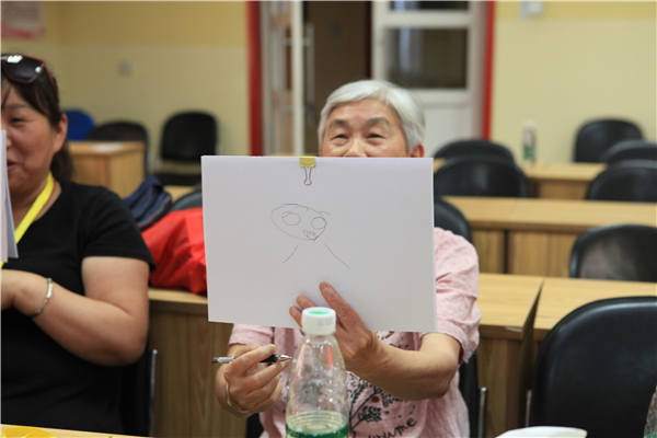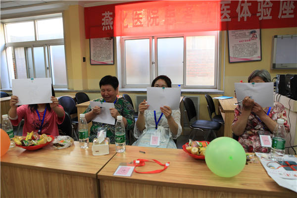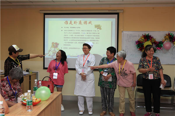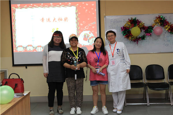 联谊会活动内容丰富多彩,包括在快乐大本营节目中的最火游戏“谁是卧底”、“唱给你听”、“爱心大使发言”等。“蒙眼作画”环节将活动推向高潮,患者们分三组进行,每一组的成员将画板反对着自己,在一分钟的时间内完成指定的人物绘画, 然后主持人将大家蒙眼作的画收集上来打乱顺序一起展示,让大家辨认, 大家看到展示的画都笑的合不拢嘴。