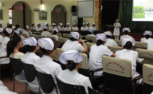 进入火一样急、一样热、一样有情的七月,北京燕化医院于7月5日在院学术报告厅举办了一场火一样激烈的护理急救知识竞赛。本次竞赛旨在提高护理急救小组成员的急救知识水平,提升急救能力,规范护理人员急救行为,确保医疗护理的安全。竞赛评委由护理部孙爱梅主任、门诊护士长王爱军和护理急救小组组长王凤芹担任,主持人由护理急救小组成员神经外科护士张健担任,各科室护士长及低年资护士百余人到场观摩了竞赛。