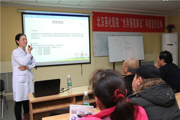 11月15日下午,北京燕化医院呼吸科在医院电教室举办了慢阻肺知识科普讲座病,并开展了慢阻肺义诊、咨询、发放宣传资料等一系列主题活动。