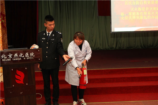一直以来,北京燕化医院就高度重视消防工作,为大力普及消防安全知识,提高医院职工的消防安全意识和防灾自救能力,围绕本次主题,11月12日下午,医院保卫科特别邀请到中国健康教育网的资深讲师为医院医务人员进行消防安全培训及演练。