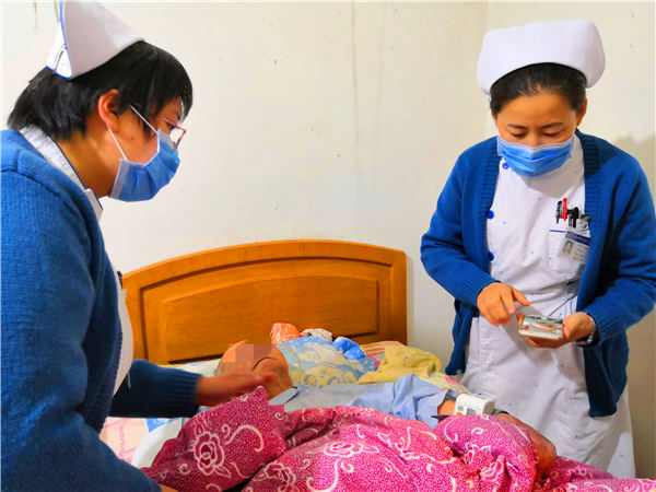 安顿好老人之后,她们还对家属、保姆做了耐心的护理指导,嘱咐其在日常护理中应注意的事项,如有异常,应及时送医就诊。