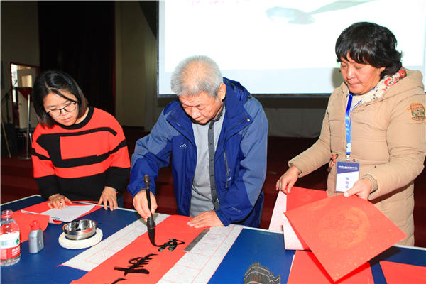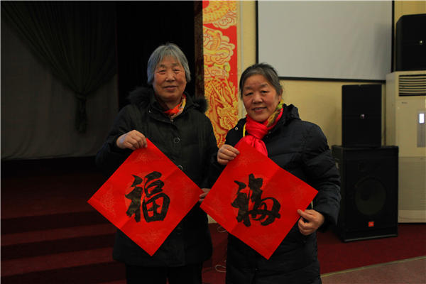 本次的特约专家赵守坡老师现场为大家写对联、写“福”字,赵老师现为井冈山会师书画院名誉院长,创作中心主任兼客座教授,中国书画界联合会会员,中国书法艺术研究院艺委会委员,爱新觉罗皇家文化书画院会员,并荣膺中国现代最具投资潜力书画家。他谦虚和蔼,字迹如行云流水,龙飞凤舞,若脱缰骏马又如蛟龙飞天,展现了大家风范,让现场观众无不惊叹叫绝。