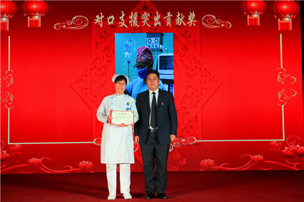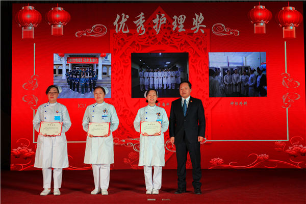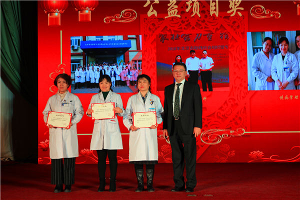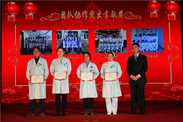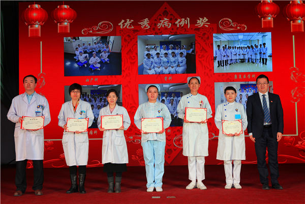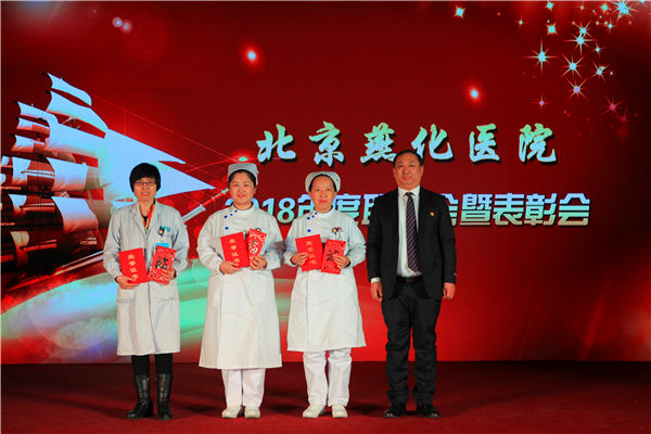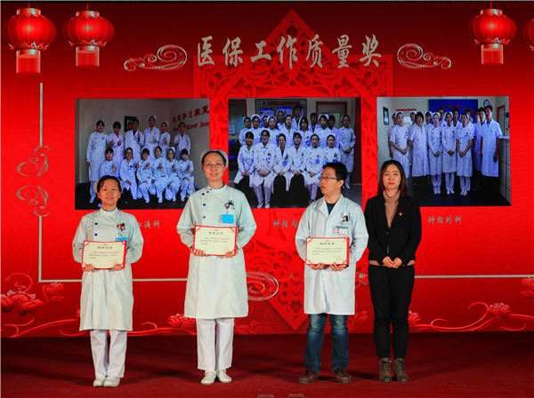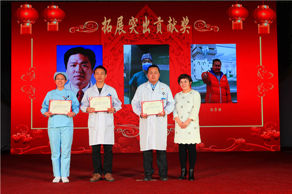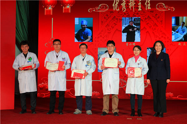 接下来便进入到大会最隆重的环节,由党委书记赵明军宣读《关于表彰2018年度先进集体、先进个人的决定》。黎荣福、乔红艳、刘淑君等15位荣誉医师、爱心天使、荣誉员工,肿瘤科、呼吸科、消化科3个先进集体,费宏亮、李小明、赵众等5名优秀科主任,刘艳玲、杜秀荣等5名优秀护士长,邓琪、刘庆顺等3名优秀青年医师均得到表彰。还评选出优秀病历奖、医保工作质量奖、创新项目奖、优质护理奖、公益项目奖、拓展突出贡献奖、对口支援突出贡献奖、医院品牌突出贡献奖等,院领导对获奖的团体及个人分别进行了颁奖及鼓励,希望在接下来的工作中能够再接再厉,再创辉煌!