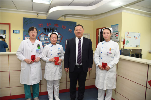 2019年2月4日除夕傍晚,北京燕化医院领导班子成员来到医院,分四组分别看望慰问了除夕万家团圆之际坚守一线守望生命的值班医护人员,给大家拜年!向他们致以新春的祝福和节日的问候,并为他们送上了热腾腾的饺子和祝福红包。