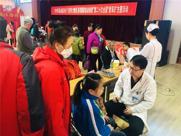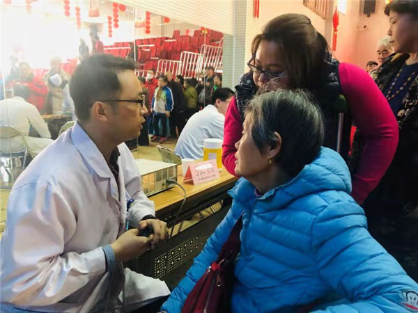 讲座结束后,李扬老师与张哲老师分别为现场的患者进行耳道疾病的筛查,居民们听从工作人员指挥自觉排队,秩序井然。两位专家一对一为患者解答相关问题,为患者提出合理的治疗建议和手段方法,得到老百姓一致好评。另一边,两名护士也忙着为现场居民测量血压,并逐一登记,对血压异常的居民进行重点提醒。整场活动井然有序,有条不紊。