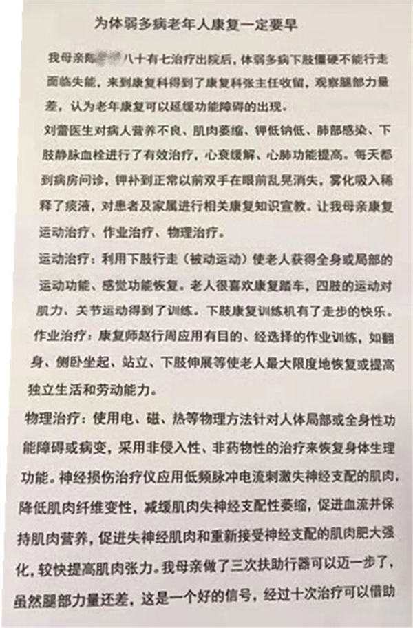 康复科一位患者家属的忠告