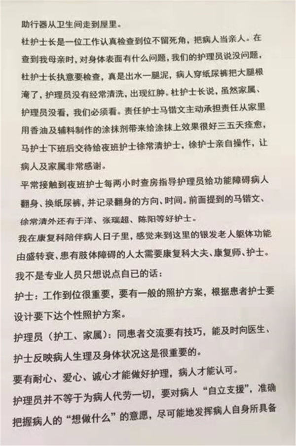 3月6日,北京燕化医院康复医学科收到了一封特殊的来信,特殊在,它既不是表扬信,也不是感谢信,却饱含一位患者家属对疾病、对医疗、对康复等的认识,可谓“久病成医”。在此向广大受众做以分享,以唤起更多的人对康复治疗的重视。