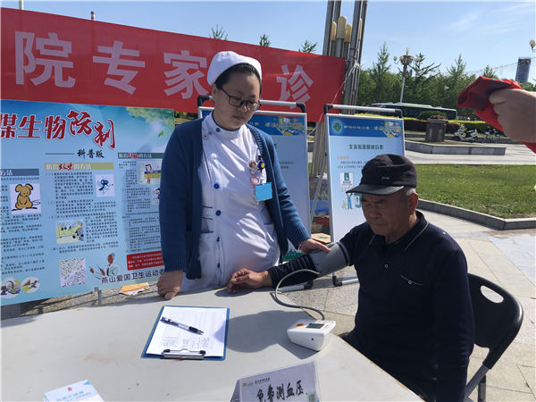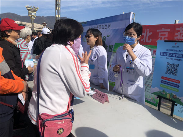 为了能够更好地对广大居民进行日常卫生的宣教,北京燕化医院也组织相关科室为大家进行义诊及家庭医生签约宣传和健康宣教活动,呼吸科医师张於为现场咨询呼吸系统疾病的患者解疑答惑,指导日常卫生习惯,眼科医师孟洁宜为大家现场查看眼部疾病,慢病管理中心赵敏为大家介绍家庭签约及掌上就医服务,并手把手教大家下载APP并告知如何使用。提供问诊咨询的同时,医务人员还为广大居民免费测量血压、免费发放宣传资料。燕山爱国卫生运动委员会的同志们还为现场的群众发放蟑螂药、卫生健康宣传书籍和宣传海报等。
