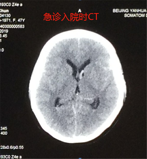 燕化医院神经外科经头颅CT检查发现,患者蛛网膜下腔出血,考虑脑动脉瘤破裂引起出血,遂给予止血等对症治疗,考虑病情较重,便紧急安排入院,以寻求进一步的治疗。