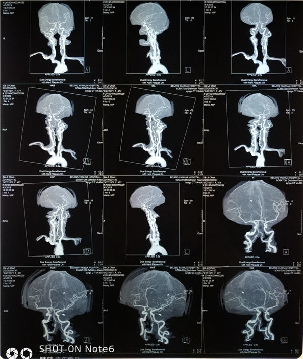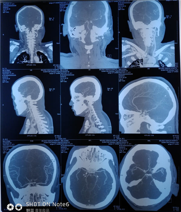 后经进一步的检查分析,医生在她的头颅CT平扫片子上发现了症结所在——在右侧颈内动脉及颈椎动脉均有可疑动脉瘤。