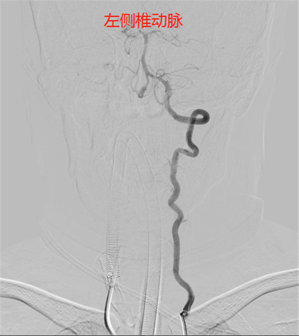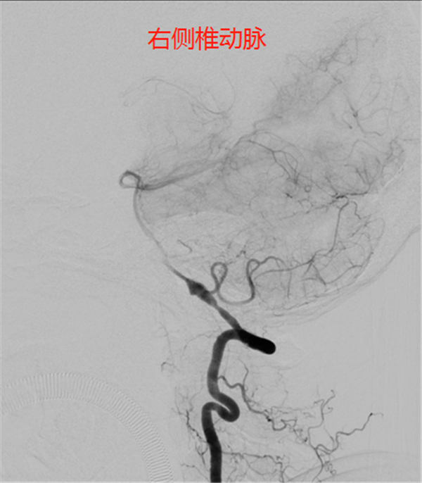 由于椎动脉属于后循环,管腔内径小,途径迂曲较多,导管到达动脉瘤部位难度较大,加之动脉瘤为梭型动脉瘤,PICA动脉自动脉瘤右侧发出,动脉瘤左侧有一小凸起,怀疑为动脉瘤破裂部位。