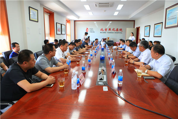 7月2日上午,由保定市涞水县卫计局副局长张明带领的其所属涞水县医院、卫生院领导一行送来第一期20名基层医务人员来到北京燕化医院进修学习。燕化医院院长赵克建、党委书记赵明军、常务院长谢莹、副院长杨金龙及相关科室负责人参加了会议交流。