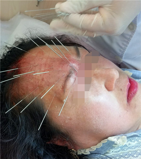 约定好时间后,患者如约于当天下午第一个来到了针灸科的诊室。经过问诊了解到,这位女士在3个月前由于情绪原因,出现了右侧面部、前额部及头顶部带状疱疹,疾病初期疼痛难忍,在本国只是做了西医止痛治疗,再无其他治疗手段。