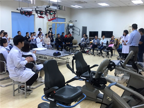 培训活动特别挑选了我院康复科六名分别患有不同病症的患者进行一对一现场康复指导教学,分别对每一位患者病情进行了分析,并与主管医师及康复治疗师进行沟通,提出意见和解决办法。广大医务工作者和病友也积极把握本次难得的学习机会,即使天气寒凉也前来参加此次培训。培训过程中,德国专家先进的康复治疗方法、完善的专业储备、严谨的工作作风和对患者全面的关怀使大家获益良多!