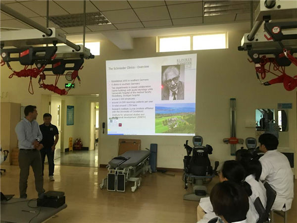 每一位患者的会诊完成后,Johannes Danke教授都会和主管医师及康复治疗师共同讨论治疗方案,针对大家工作中遇到的问题进行探讨,Johannes Danke教授以多年的临床经验给我们很多针对性的建议,同时介绍了很多德国先进的康复理念。