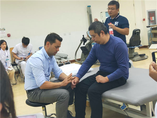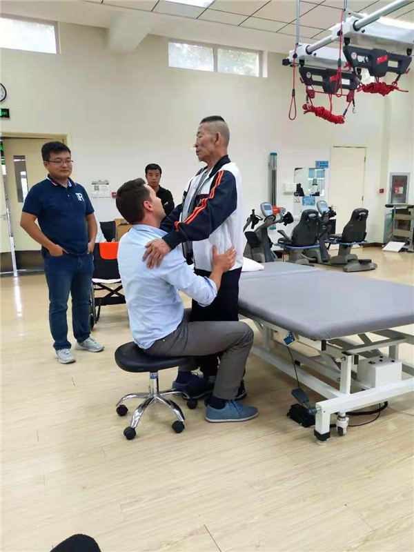 在会诊时,Johannes Danke总是先耐心询问患者的病史,然后做详细的体格检查和功能评估,针对患者的不同情况提出自己的建议,进一步指导患者进行康复训练。Johannes Danke的建议常常给我们更多的灵感,通过深入浅出的分析,引出深刻的康复理论,他对每名患者的诊治时间,平均在1-1.5小时,并总结出对患者最有效的康复治疗方法,Johannes Danke强调,最佳的康复时间应在病情稳定后24小时以内开展。。