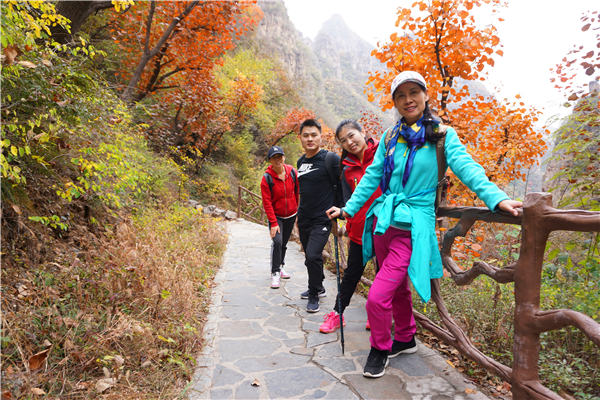 11月初的狼牙山空气清新、层林尽染。9:30大家陆续到达景区门口,并在五勇士雕像前合影留念。在狼牙山入口处恰逢某公益机构关注校园艾滋病、戒烟、关爱生命宣传签名活动,作为医务工作者大家毫不犹豫在签名立誓榜上签下了名字,体现我们医院员工热爱公益、热爱社会的大爱之心。