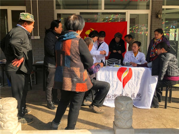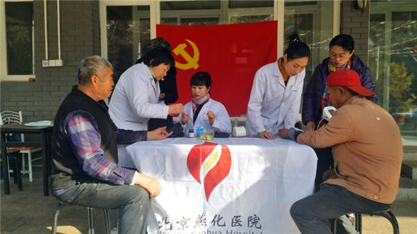 仪式结束后,党员和积极分子来到圣水峪村开展了义诊活动。免费为村民们进行了测血糖和血压,并为他们传授科学监测血糖血压、科学营养饮食等健康知识,受到了村民的欢迎和好评。