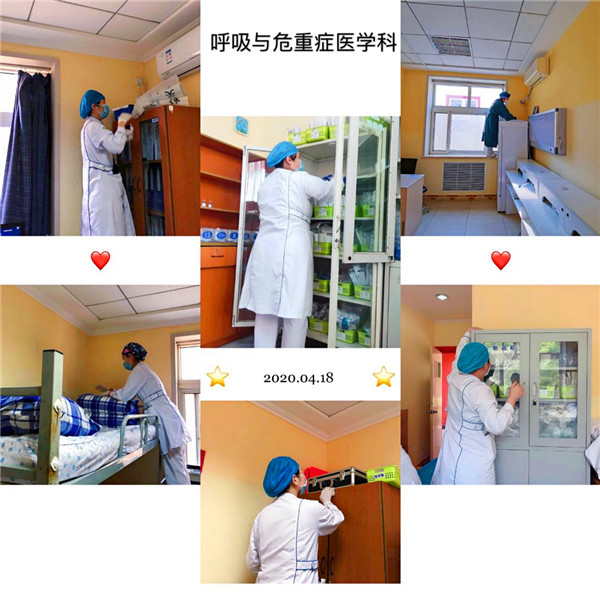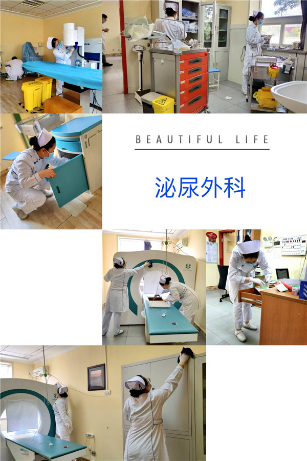 作为医院的主要功能区域,各临床科室对各自病区进行了全面的整理清洁工作,除了对墙面、门窗、空调等进行全面擦洗;还对各种仪器设备进行消毒清洁,保证每一位患者的安全使用。对病房、值班室的柜子、床铺统一进行清扫打理;对医生办公桌面、文件资料进行整理清洁。严格生活垃圾、医疗垃圾的规范管理,保证病区无积存杂物、无废弃物、无卫生死角,确保住院患者的生命健康安全。