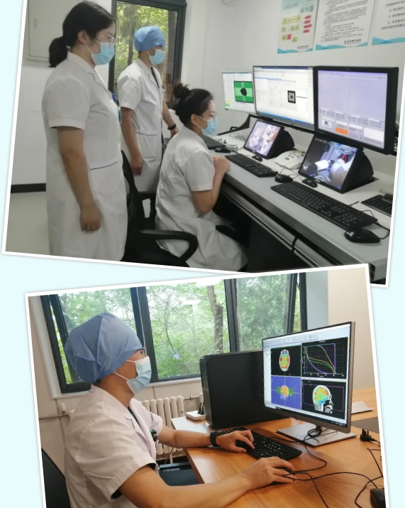于是,在夏主任的带领下,我们患者的病情症状、病灶的性状、位置、大小,制定了一个个性化的脑部放疗方案,并反复耐心安抚病人,为了消除患者的过度恐惧心理,我们还在治疗前让患者参观治疗室,熟悉环境的同时给患者讲解我们先进的治疗设备。全科医务人员都积极配合,营造岀轻松愉快的诊疗气氛,使患者精神放松后欣然接受我们的治疗。