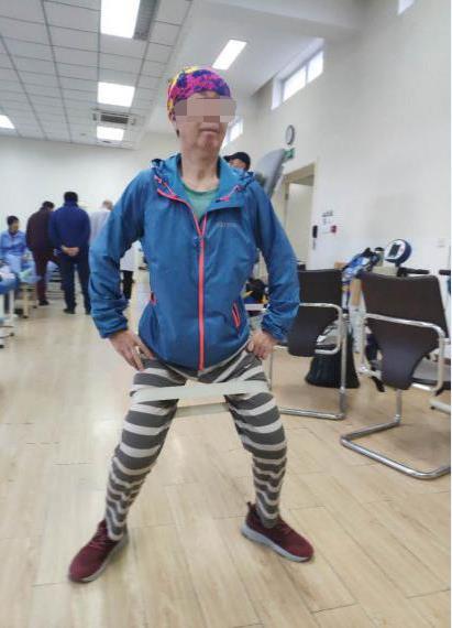 根据对许阿姨的评估结果进行分析,我们为其制定了专业的康复训练计划。首先,进行手法治疗,根据患者体态评估进行身体力线调整,松解紧张部位肌肉,激活松弛部位的肌肉。然后,进行弹力带抗阻式半蹲侧向行走训练,可训练患者臀大肌、臀中肌、臀小肌及大腿肌肉群,增加骨盆与膝关节稳定性。手膝两点支撑伸展训练背部肌群与身体的协调性。
