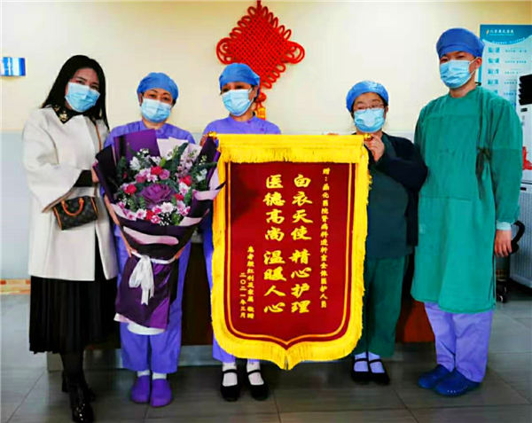 三月春暖花开时,阳光普照暖融融。3月8日,患者殷先生及家属将一面写有“白衣天使精心护理。医德高尚,温暖人心”的锦旗送到北京燕化医院肾内科血液透析室的医护人员的手中。表达对医护人员精湛医术、高尚医德、温馨服务的感激之情。