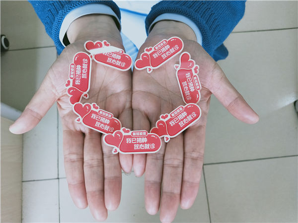 一位前来就诊的阿姨看到后说:“医生护士们佩戴胸牌后,感觉到这看病很安全,放心。”