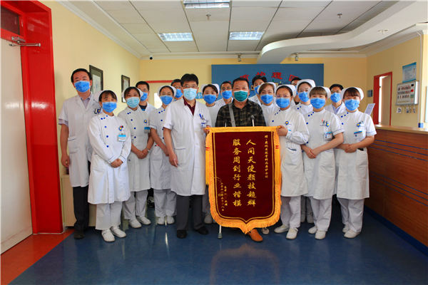 5月24日一大早,趁着医护人员交接班的间隙,骨科住院患者靳先生拿出精心准备好的三面锦旗,分别送给了他的主治医生陈岩、主管护士周文静以及全体骨科医护人员,还在康复期的他拄着双拐一遍又一遍的和医生握手,连声的感谢二字已不足以表达他的感激之情。