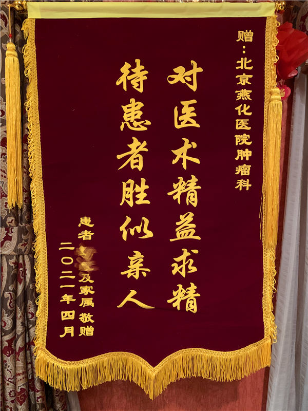 2021年3月,历时一年的治疗后,李女士身体指标恢复平稳,她又生活充满了希望,更对北京燕化医院肿瘤科医护团队充满感激,感谢燕化医院优质的专家资源、优秀的医疗团队、强大的社会资源整合能力以及开放的治疗理念和管理模式,感谢肿瘤科这个温暖有爱的大家庭,让我们广大患者在医治身体疾病的同时,也能够感受到心灵的安慰与愉悦之情。