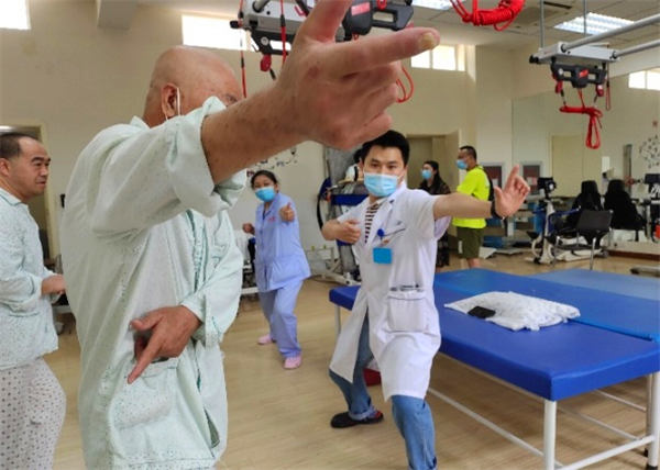 随着体医融合的不断推进,作为传统运动疗法的八段锦也来打卡康复。八段锦这一传统保健功法,注重“调形、调息、调神”相结合。通过呼吸配合运动,即“导气”与“引体”来达到调息、调形的效果。目前,北京燕化医院康复医学科治疗中心已开展指导住院患者进行八段锦训练,一些护工也加入到训练队伍当中。