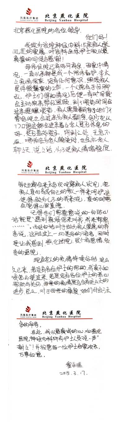 上一篇: 患者家属石xx感谢心内科刘丹亮、黄艳平关爱患者、热情周到
