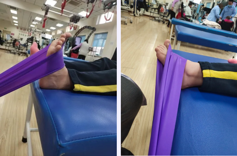 据她本人描述,自己在踢足球时,由于左脚支撑不稳而发生踝关节过度内翻,导致踝关节扭伤,当时脚踝肿胀,压痛明显。伤后半年,家长发现依依走路姿势怪异,多次纠正无果,遂来北京燕化医院康复医学科就诊。经检查发现她踝关节活动范围不受限,但走路时伴有疼痛,为其实施了关节松动,松动踝关节;弹力带抗阻训练;红外线治疗,用于局部淤血和软组织肿胀可以促进局部的血液循环,消除淤肿;超声波治疗,缓解疼痛,促进损伤的一系列康复干预。