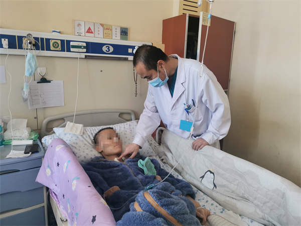 经过一段时间的精准放疗和药物针对性治疗后,在医护人员的精心治疗护理下,目前,他的病情已得到基本控制,肿瘤基本消退,气管插管已经拔除,放疗后基本无发热、呕吐等症,而且能够在搀扶下站立,意识清晰,且语言、智力都有所恢复,在别人问话时,能用语言、手势做出回应。