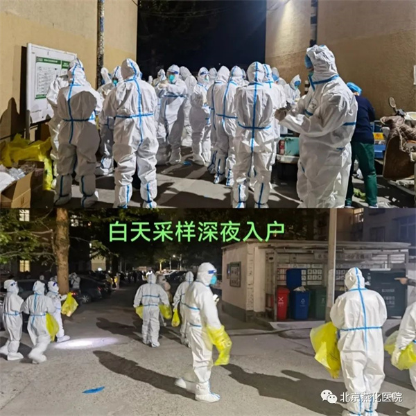2022年5月3日,在“五一”假期结束前一天,北京市中小学接到延迟返校的通知,而作为医务工作者的我们同时也接到了除执行原有的窦店、长阳、燕山集采及上门入户采集核酸任务外,还需要完成连续三天全区全员核酸大检测的任务,需要抽调医务人员至少350名以上。在大家日夜奋战、精神紧张的情况下完成这项任务,其困难程度是可想而知的,但在疫情面前,大家并没有退缩,很多科室除留有值班和二线医师外,全部投入到抗疫队伍中。采样前一天各科室都踊跃报名,短时间内人员即集结完毕,每次都能圆满完成任务。回医院稍早一些的同事来不及回家,拖着疲惫的身躯继续到报告厅领取上门采样任务,甚至凌晨才返院。即便如此,也从无抱怨,有的只是互相加油打气,更多的是大家抗疫必胜的信念。