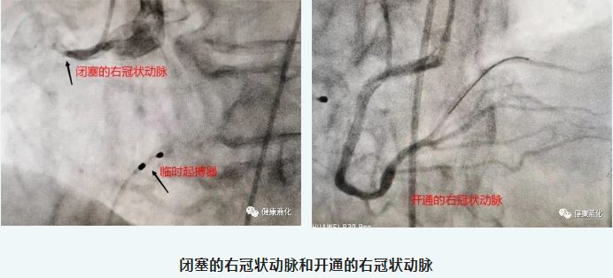 王志勇副主任医师迅速联系李钢主任和刘淑君护士长,紧急调配导管室人员,李钢主任和王志勇副主任医师迅速上台完成冠脉造影,发现患者右冠状动脉近段100%闭塞。过导丝、血栓抽吸、植入支架,手术过程一气呵成,半小时后患者平稳回到CCU监护病房,胸痛胸闷症状完全缓解。