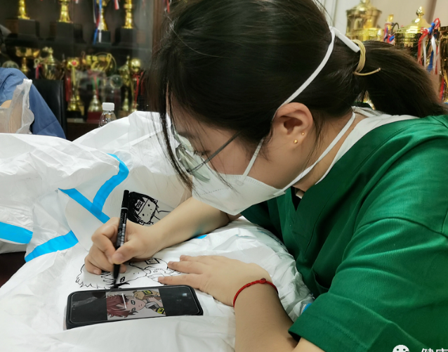 她们有一双灵活的巧手,不仅能照护患者,还能绘制精美图案,而且写得一手好字,但却不善声张,“只要能为大家抗疫鼓舞士气,这点儿小事不算什么,但我更要把精力放在采样上,所以可能不能满足太多人”她们诚恳地说道。