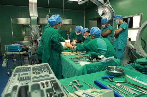 骨科李亚非主任组织进行了会诊,决定采用微创的长杆螺纹钉外固定架技术固定粉碎的骨头。由曹洪国副主任带领毛成、陈岩、张猛等医师进行了细致的手术。