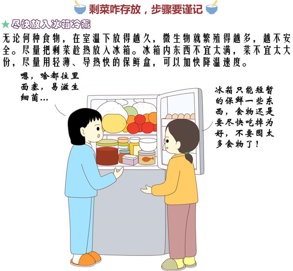 我们有时会一次性烹饪较多食物,勤俭节约是中华民族的传统美德,许多人舍不得浪费隔夜菜,放入冰箱后第二天继续食用。到了夏天,天气回暖,食用不合理保存的饭菜会有许多健康隐患。那么一顿吃不完的饭菜该如何合理保存呢?我们一起一探究竟吧!