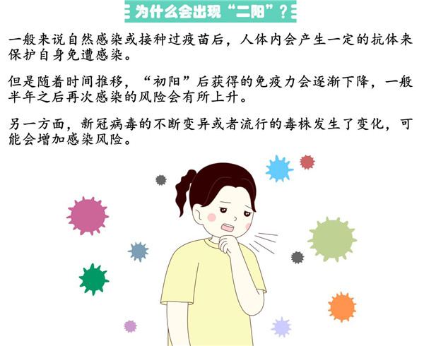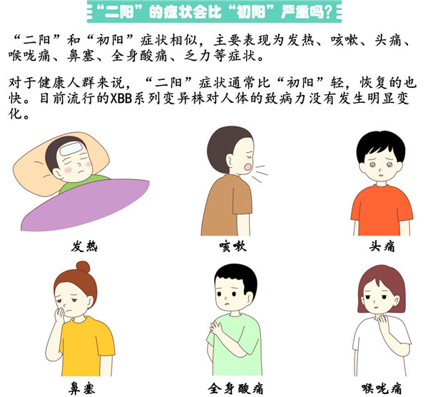 最近一段时间,新冠“二阳”备受大家关注,身边有很多人会出现发热、流鼻涕、咳嗽、咽喉疼痛等症状,该如何科学做好防护?今天一起来谈一谈大家关心的“二阳”的相关问题。