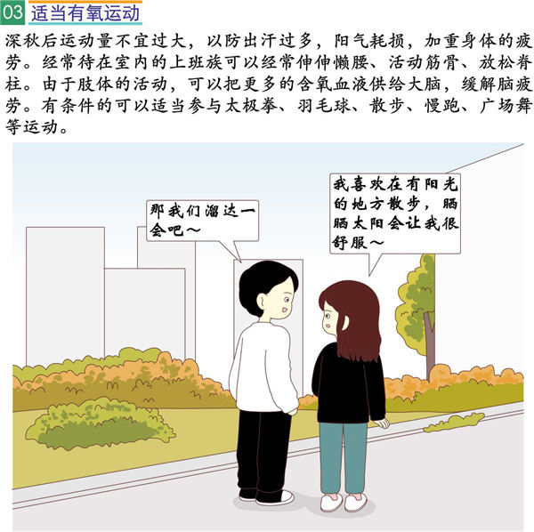 除了失眠,秋天还是感冒、上呼吸道感染、慢性疾病多发的季节。日常生活中我们要注意防寒保暖,合理饮食,每天进行适量的运动,保持良好的生活习惯有助于提高身体抵抗力和睡眠质量。愿大家都拥有健康的体魄,一觉睡到大天亮!